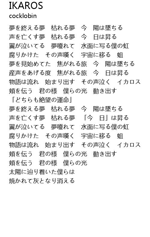 | 物語は流れ 始まり出す その声泣く イカロス | |