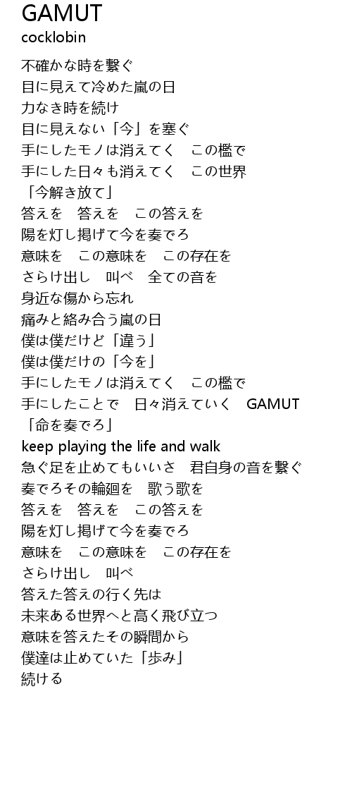 | 急ぐ足を止めてもいいさ 君自身の音を繋ぐ | |