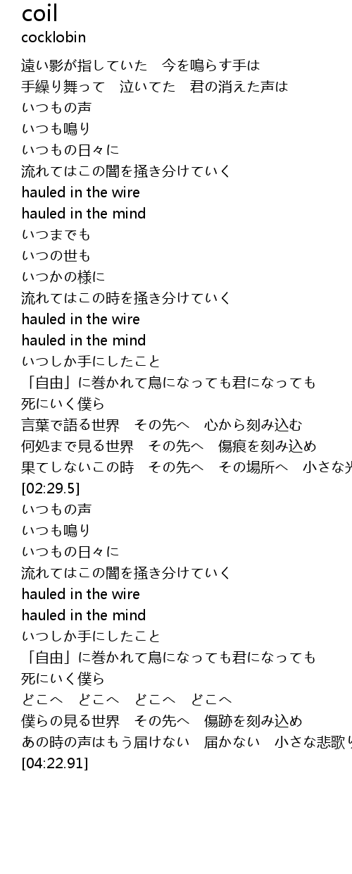 | [00:38.30] | 手繰り舞って 泣いてた 君の消えた声は |