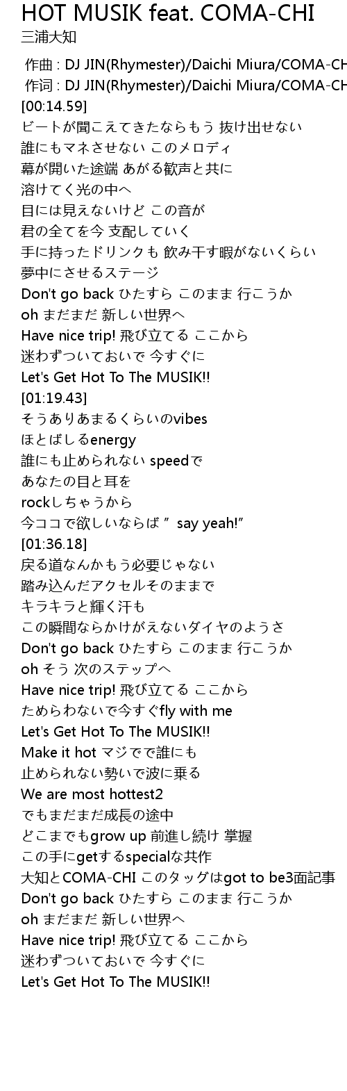 | [02:56.04] | Let's Get Hot To The MUSIK!! |