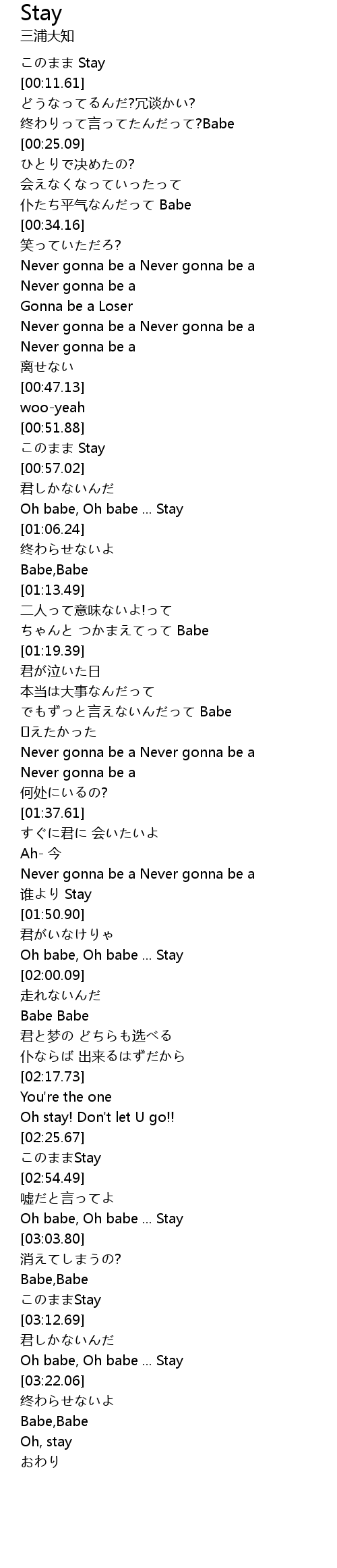 | [03:18.00] | Oh babe, Oh babe ... Stay |