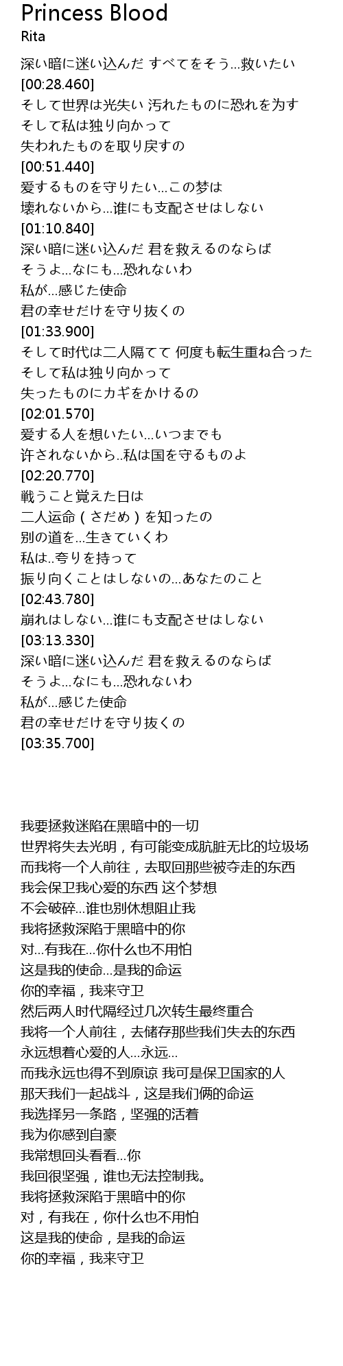 | [02:24.490] | 戦うこと覚えた日は 二人运命(さだめ)を知ったの |
