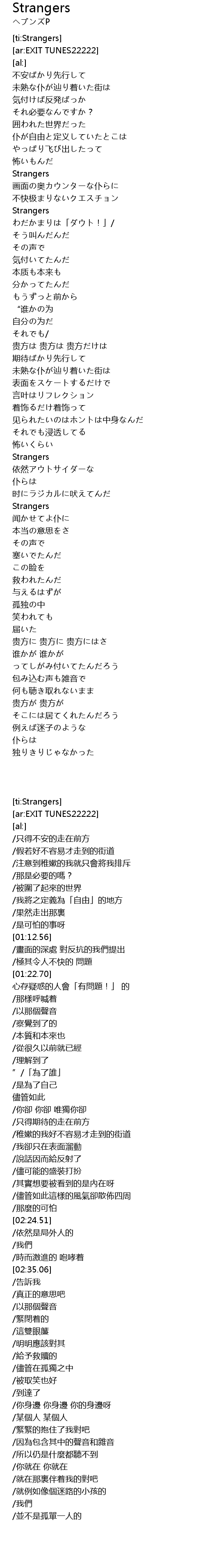 | [02:24.51] | Strangers |