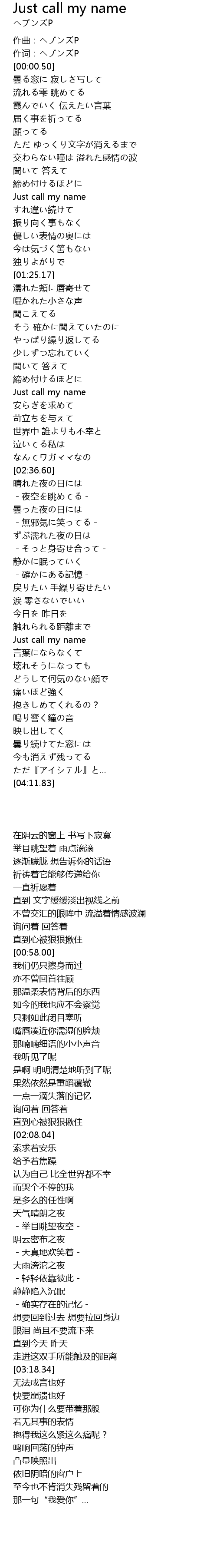 | [03:18.34] | Just call my name |