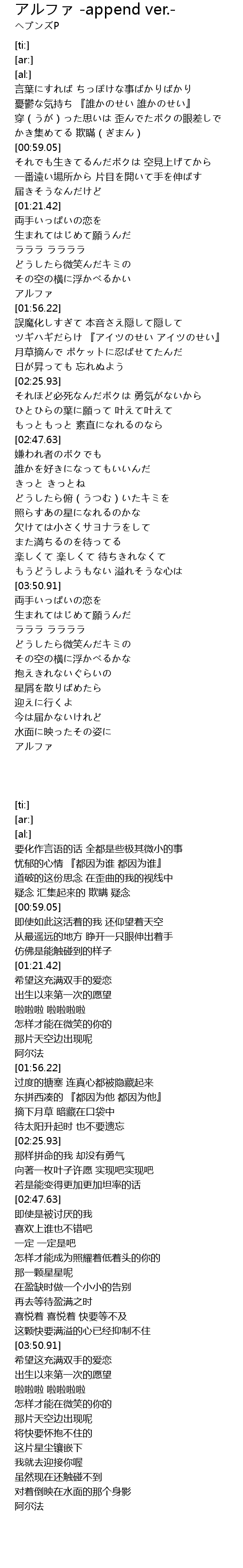| [01:53.54] | アルファ |