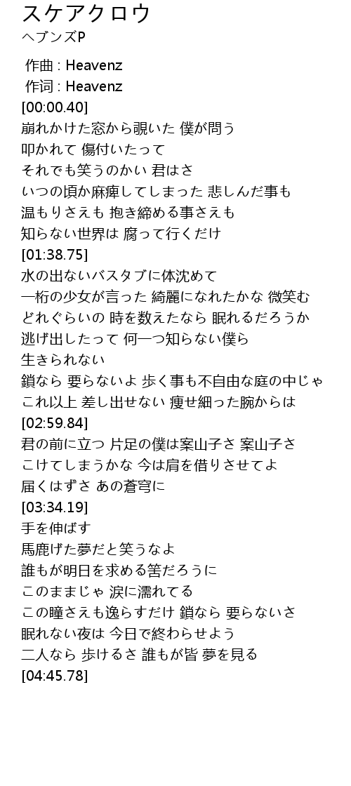 | [01:30.18] | 知らない世界は 腐って行くだけ |