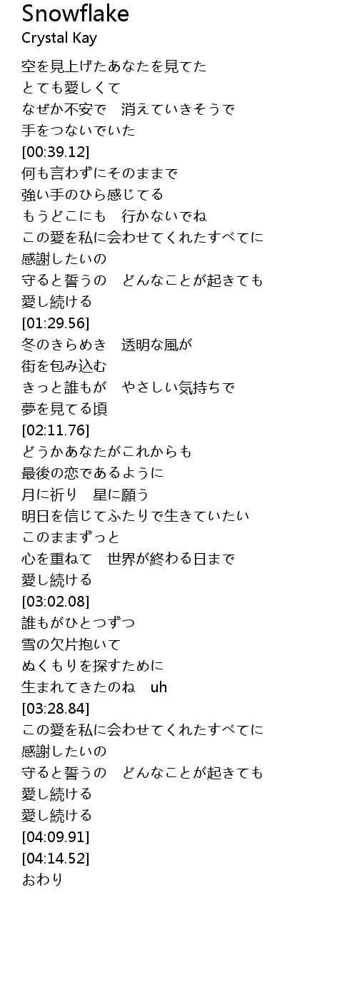 | [03:09.99] | 雪の欠片抱いて |