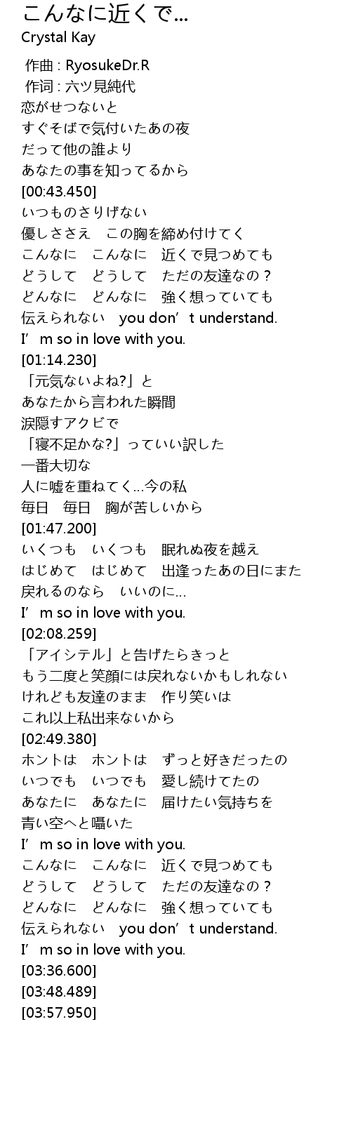 | [00:57.490] | どうして どうして ただの友達なの? |