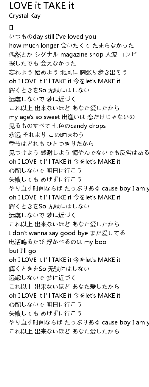 | oh I LOVE it I'll TAKE it 今をlet's MAKE it | |