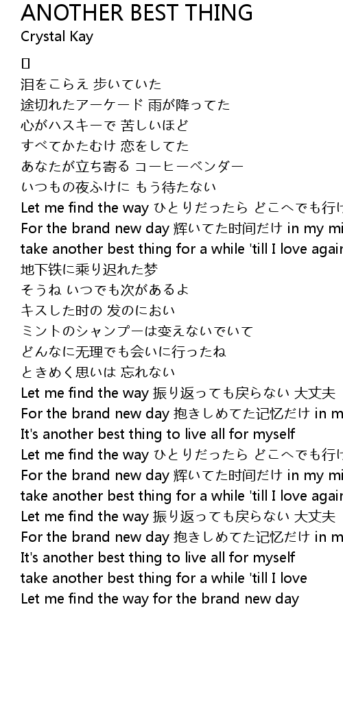 | For the brand new day 抱きしめてた记忆だけ in my arms | |