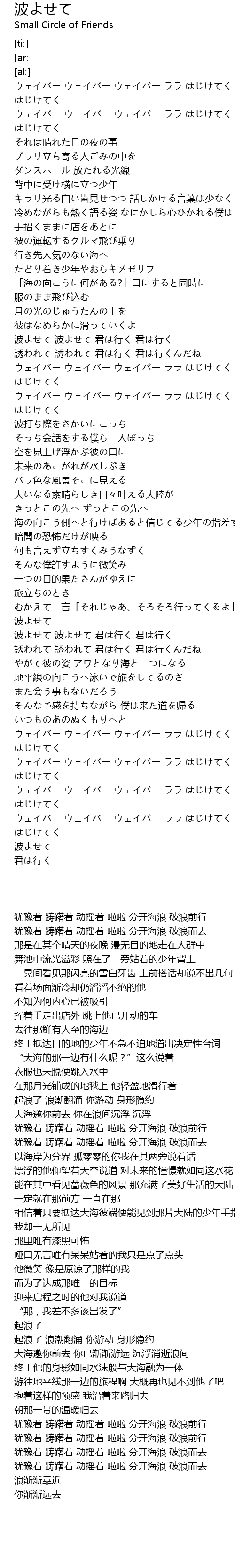 | [04:06.12] | ウェイバー ウェイバー ウェイバー ララ はじけてく はじけてく |