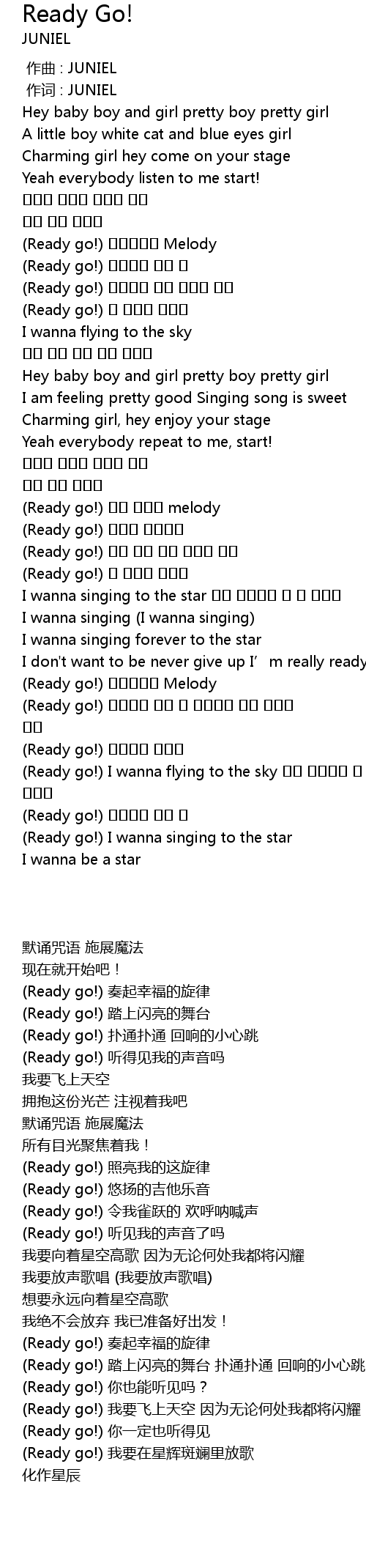| [02:43.50] | (Ready go!) I wanna flying to the sky 항상 어디서나 빛 날 테니까 |