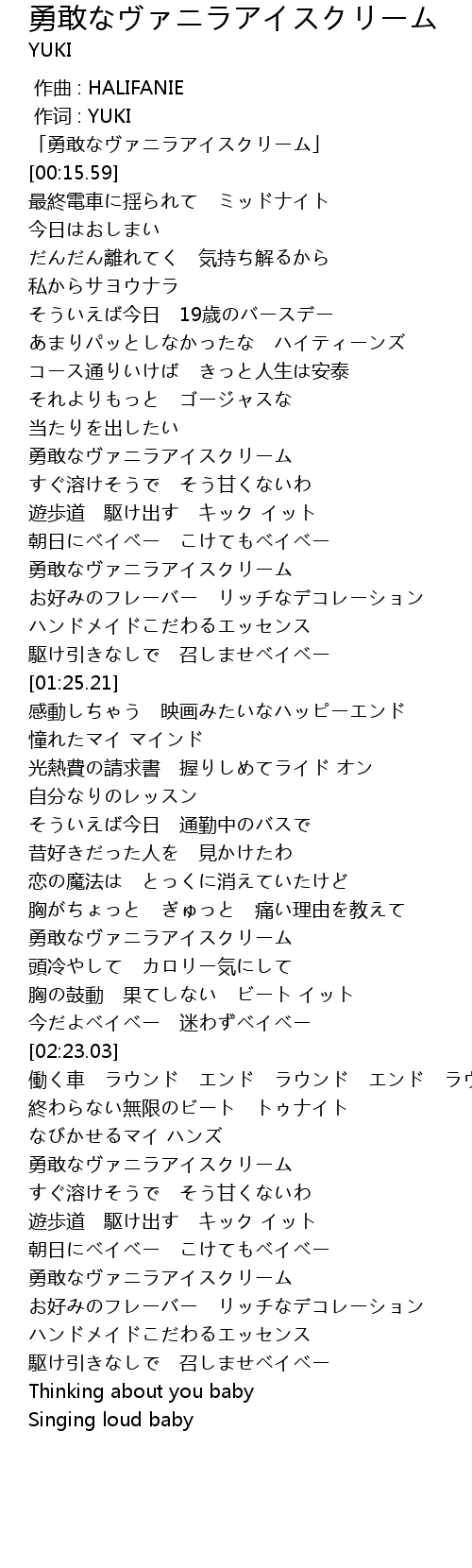 | [00:51.42] | 勇敢なヴァニラアイスクリーム |