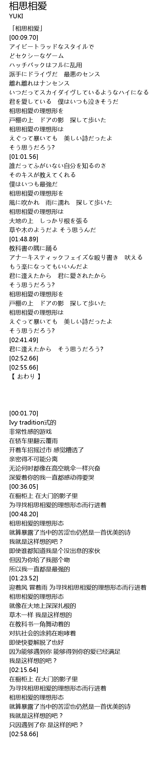 | [02:27.24] | 相思相愛の理想形は |