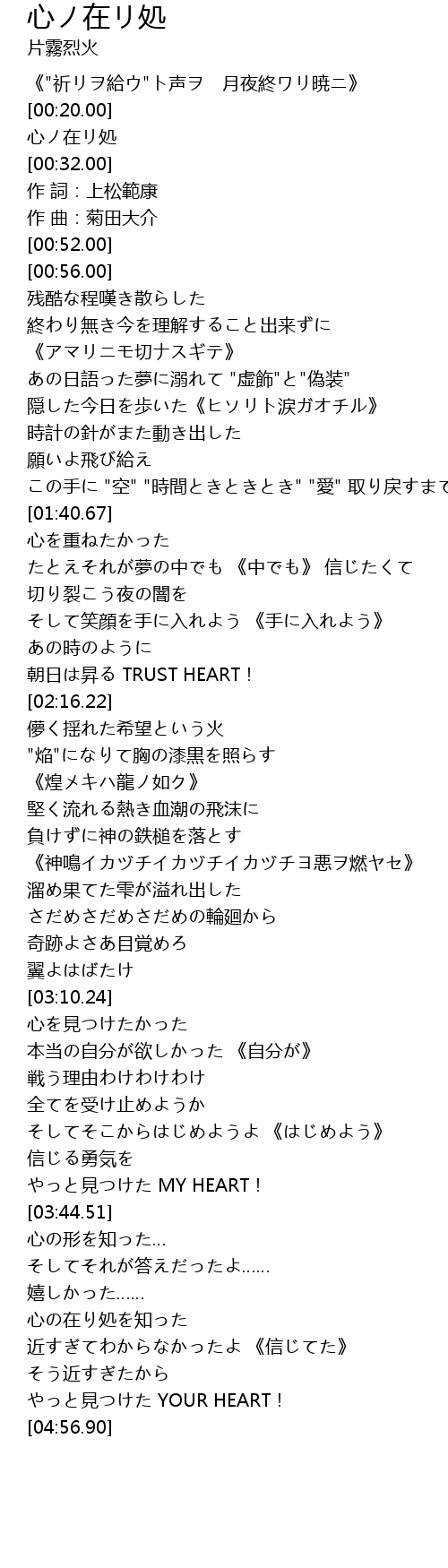 | [00:22.00] | 心ノ在リ処 |