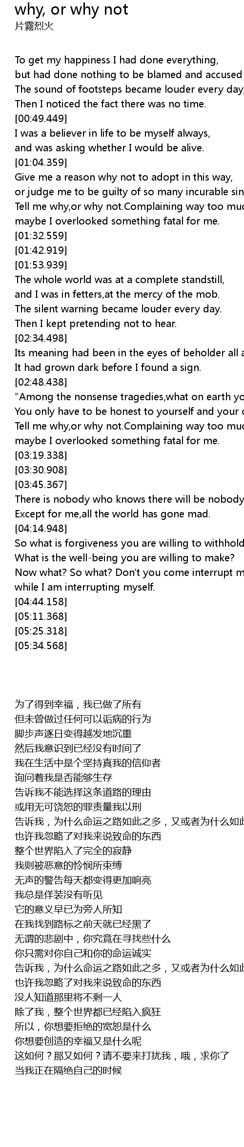| [03:04.818] | Tell me why,or why not.Complaining way too much, |