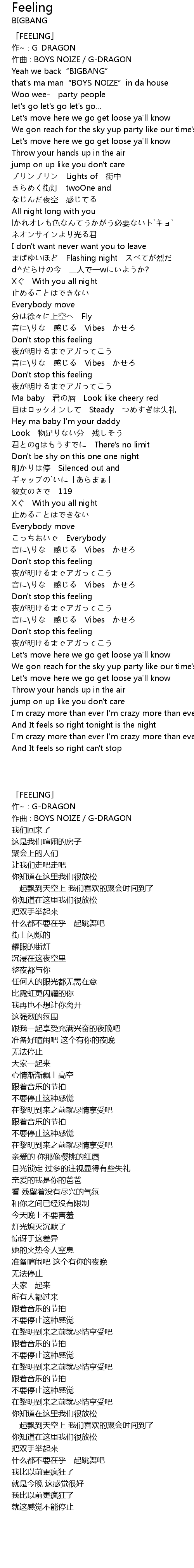 | [00:09.70] | 作曲∶BOYS NOIZE/G-DRAGON |