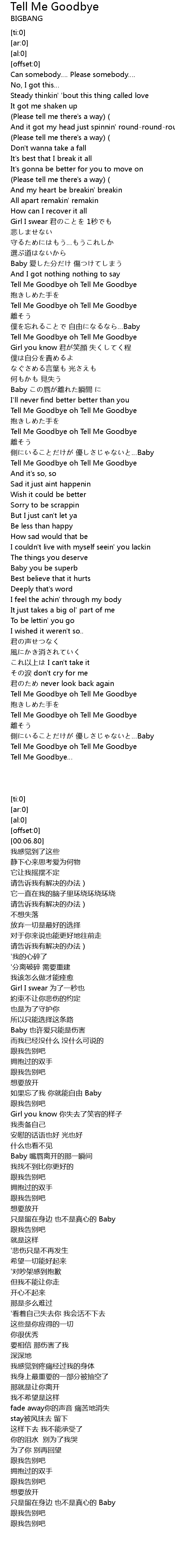 | [01:18.51] | Tell Me Goodbye oh Tell Me Goodbye |