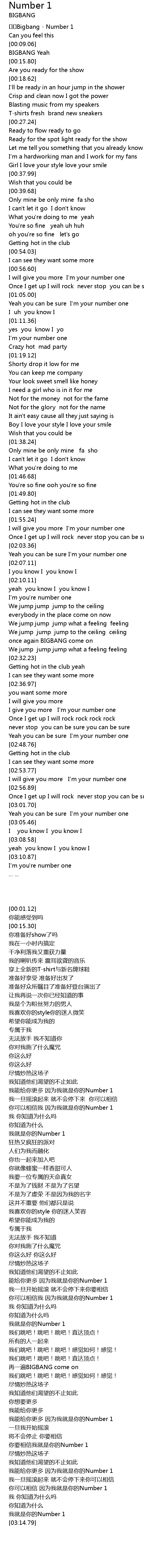 | [00:01.12] | Bigbang Number 1 |