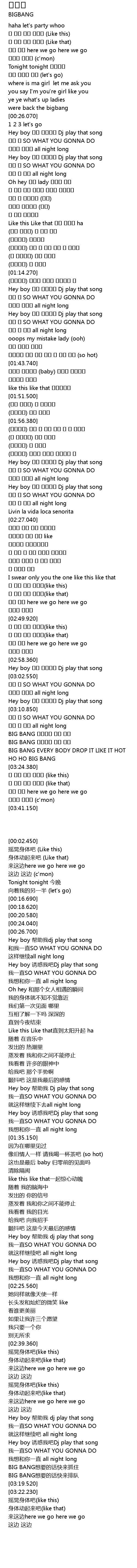 | [03:19.520] | BIG BANG EVERY BODY DROP IT LIKE IT HOT |