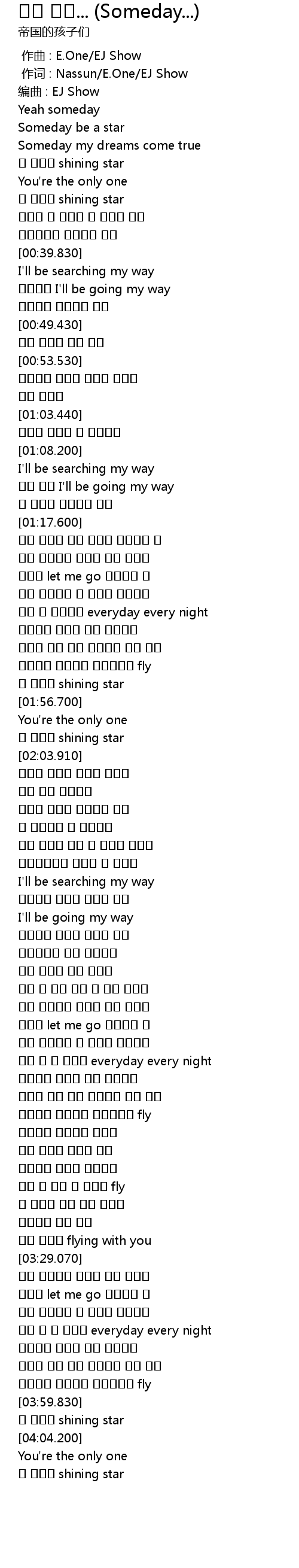 | [00:00.00] | 作曲 : E.One/EJ Show |