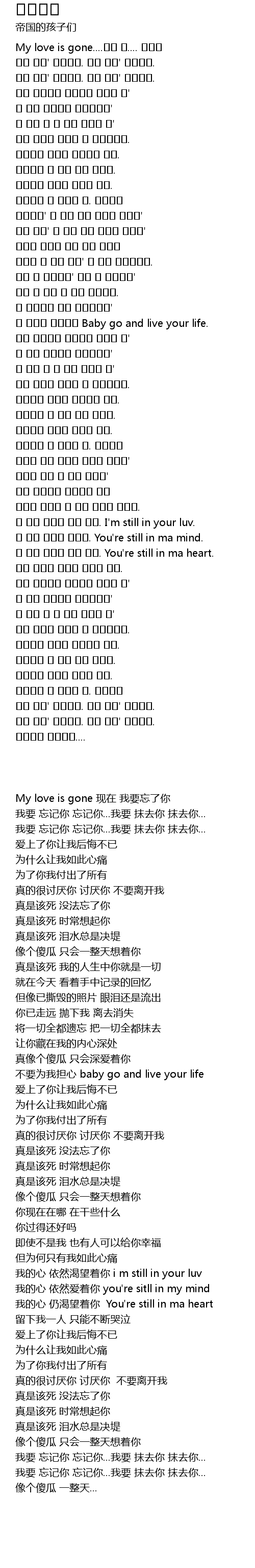 | [00:05.650] | My love is gone....이젠 널.... 잊을래 |