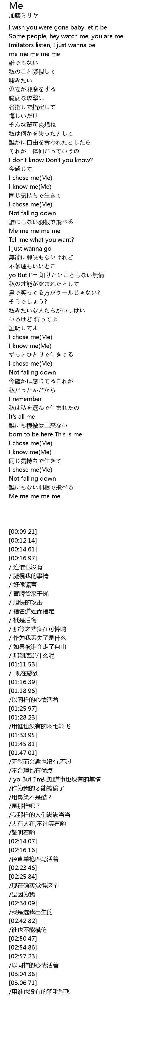 | [03:04.38] | I chose me(Me) |