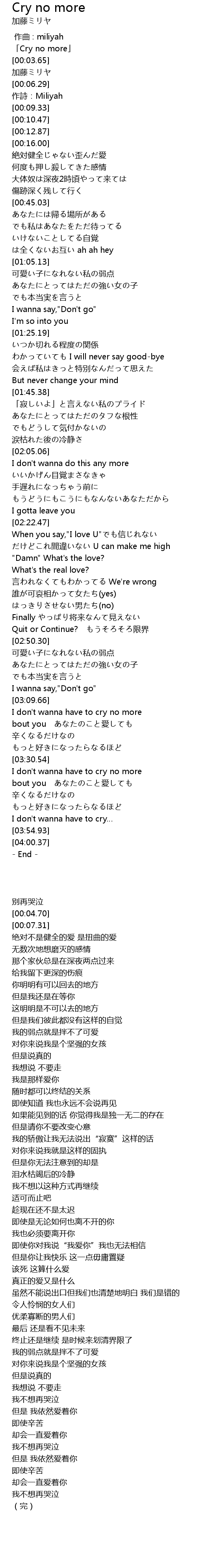 | [00:00.70] | 「Cry no more」 |