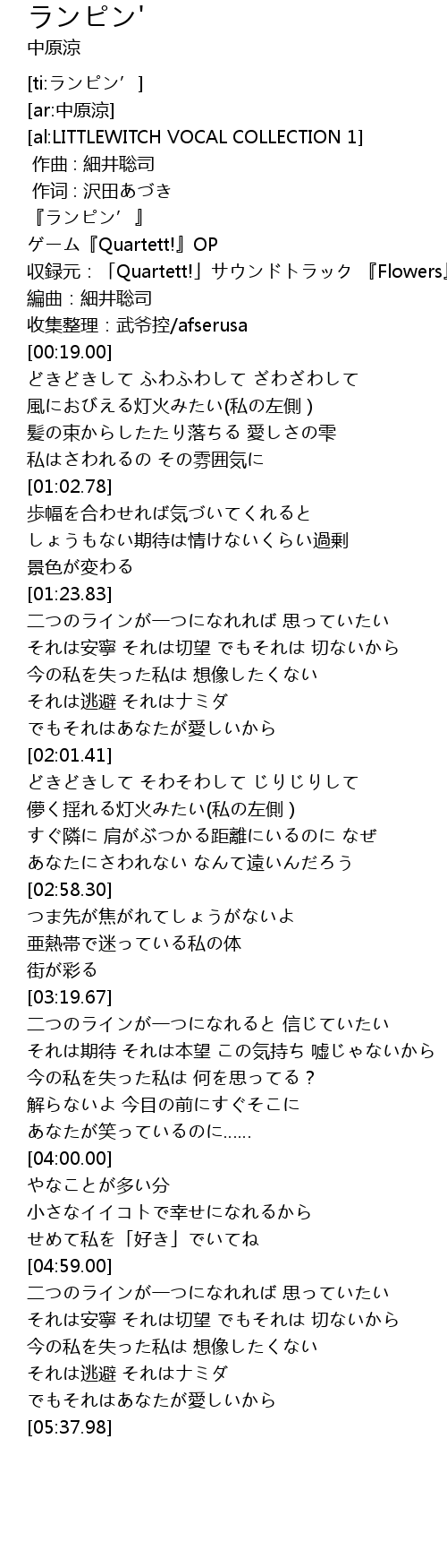 | [00:04.00] | 収録元:「Quartett!」サウンドトラック 『Flowers』 |