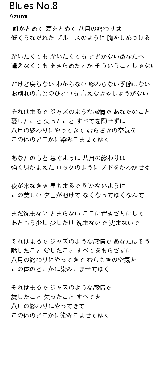 | 誰かとめて 夏をとめて 八月の終わりは | |