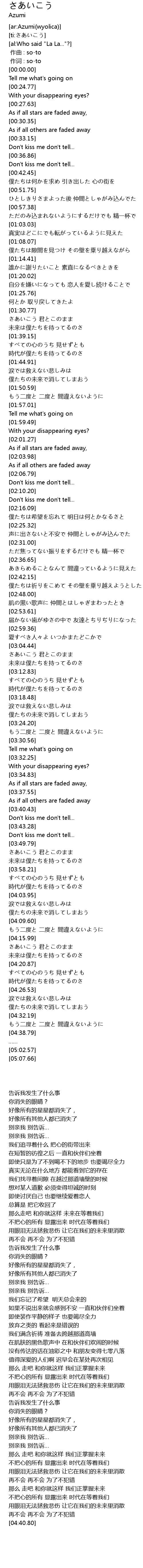 | [03:31.00] | Tell me what's going on |