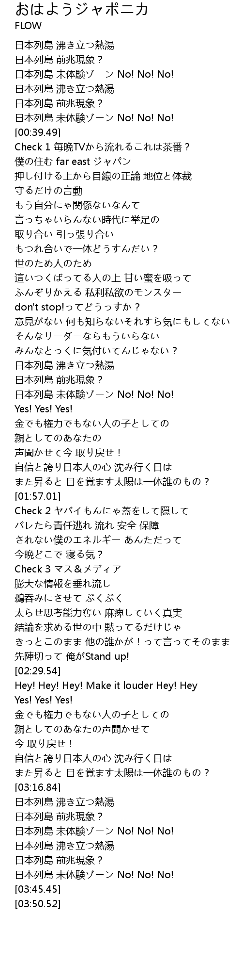 | [03:30.44] | 日本列島 未体験ゾーン No! No! No! |