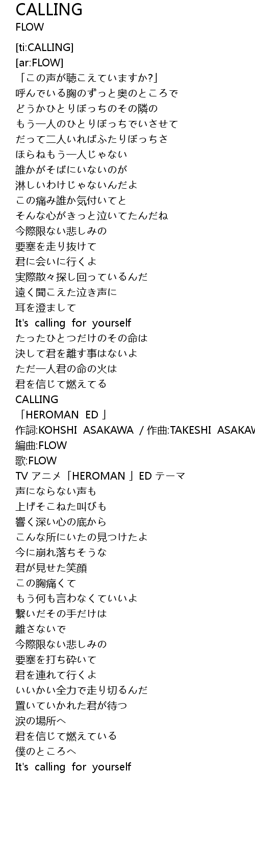 | [01:54.195] | TV アニメ「HEROMAN 」ED テーマ |