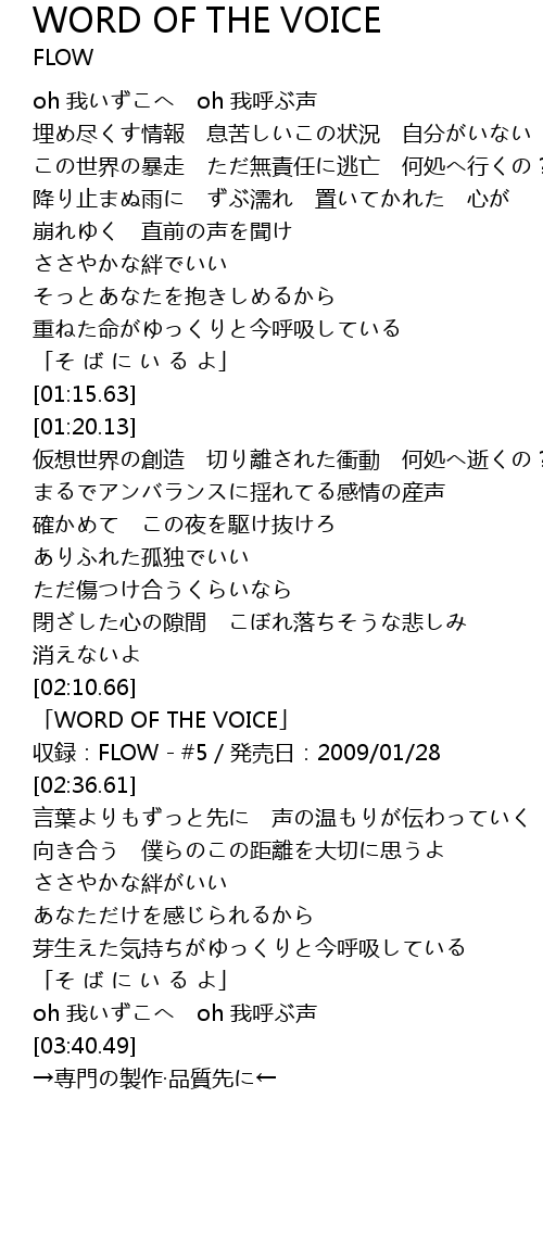 | [02:12.66] | 「WORD OF THE VOICE」 |
