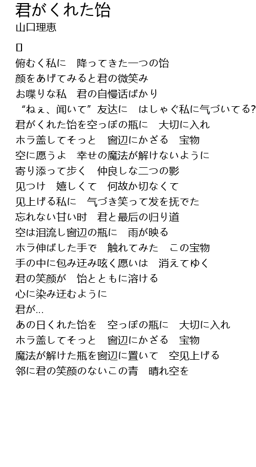 | あの日くれた饴を 空っぽの瓶に 大切に入れ | |
