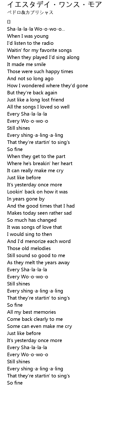 | It' s yesterday once more | |