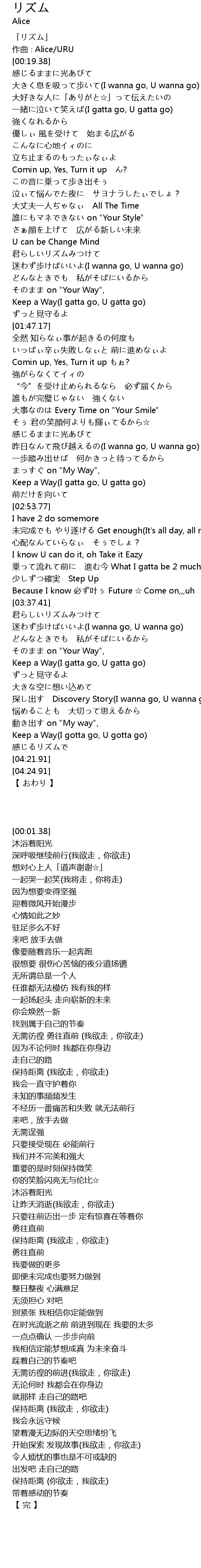 | [04:15.51] | Keep a Way(I gotta go, U gotta go) |