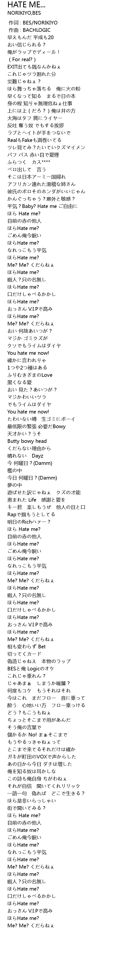 | [00:00.000] | 作词 : BES/NORIKIYO |