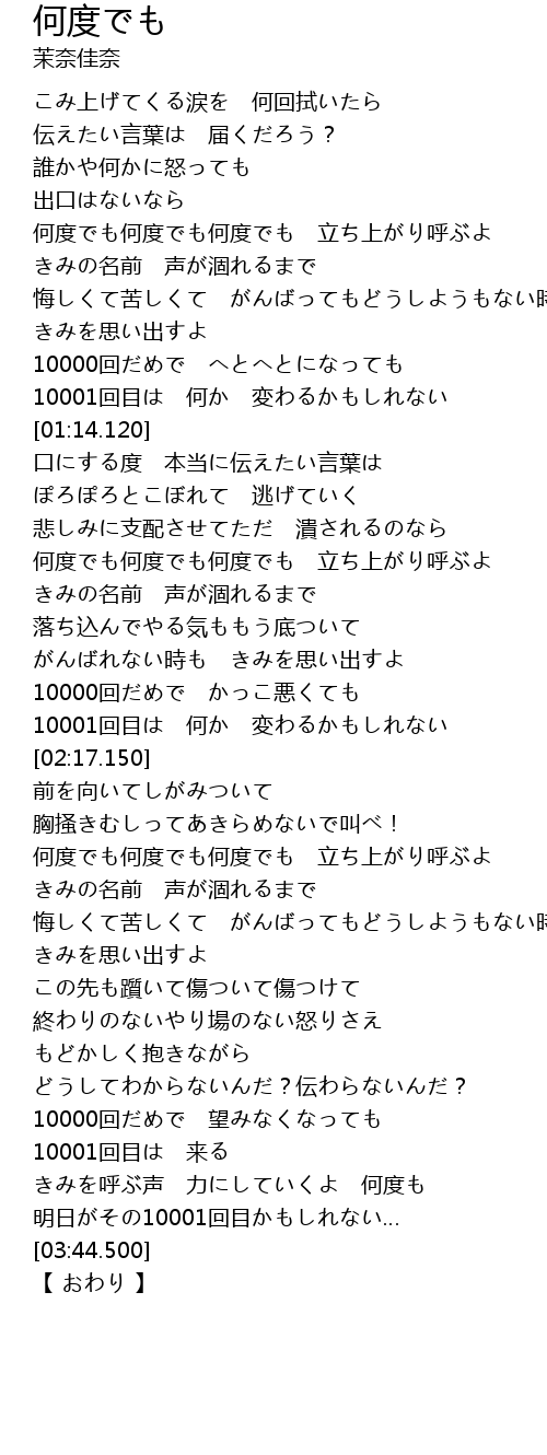 | [01:08.120] | 10001回目は 何か 変わるかもしれない |