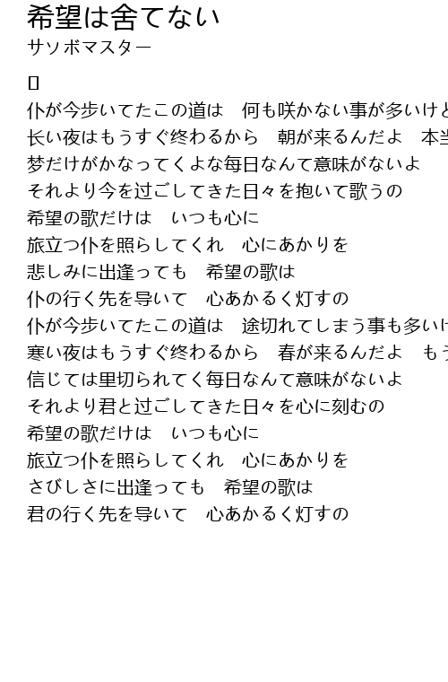 | 寒い夜はもうすぐ终わるから 春が来るんだよ もうすぐなんだよ | |
