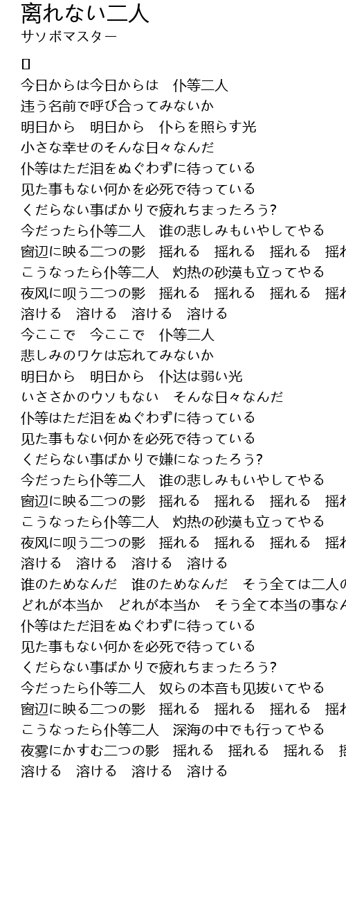 | 今だったら仆等二人 谁の悲しみもいやしてやる | |