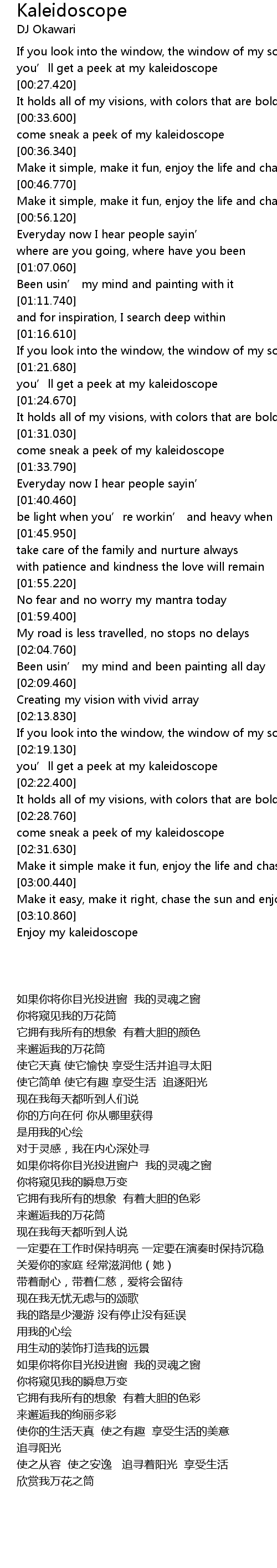 | [02:20.000] | you' ll get a peek at my kaleidoscope |