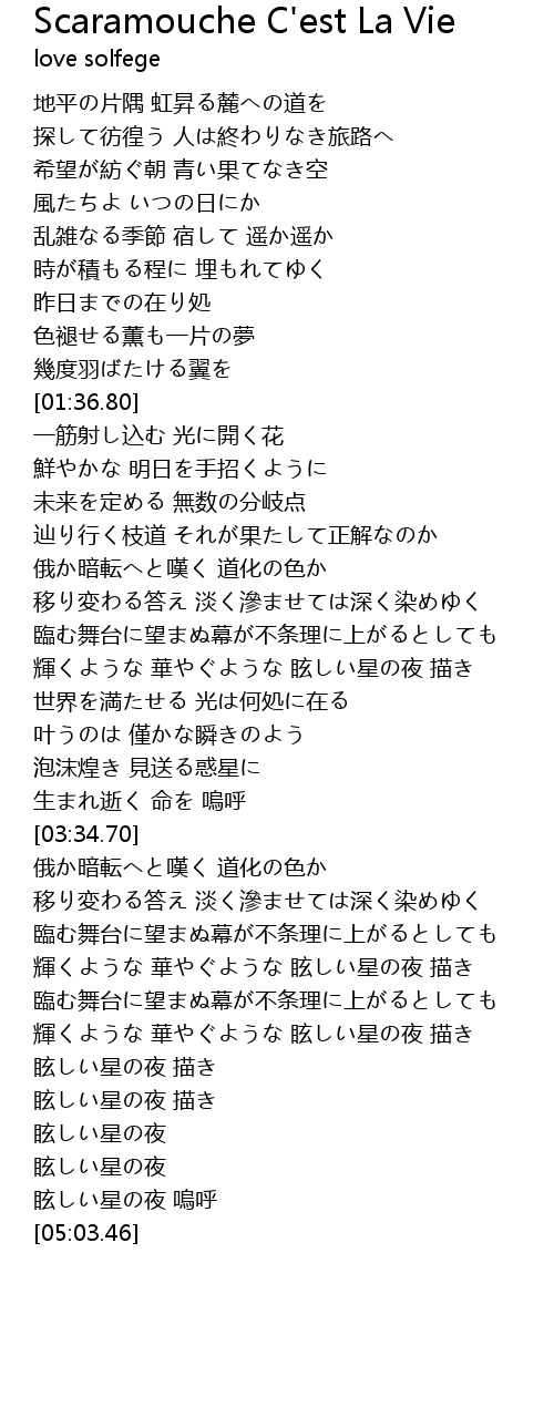 | [00:10.30] | 探して彷徨う 人は終わりなき旅路へ |