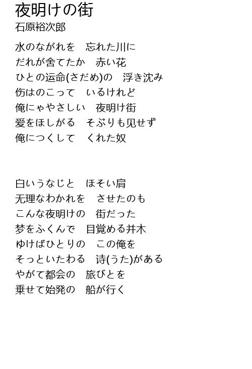 | Song | 夜明けの街 |