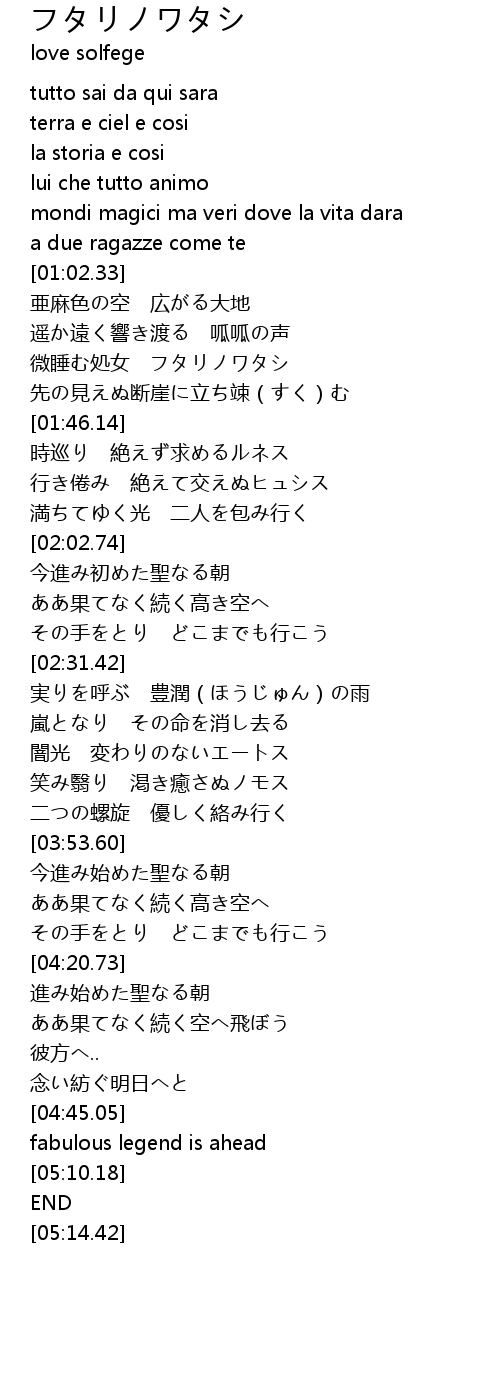| [02:21.18] | その手をとり どこまでも行こう |