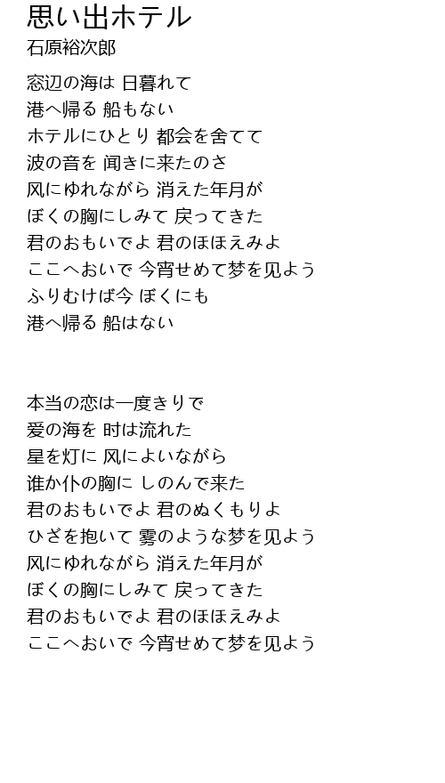 | Song | 思い出ホテル |
