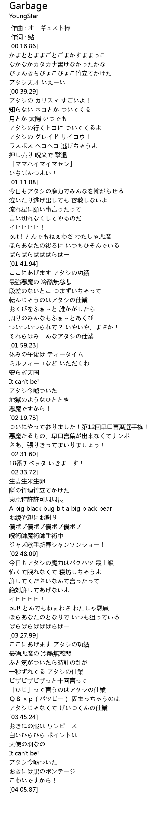 | [02:27.51] | 悪魔たるもの、早口言葉が出来なくてナンボ |