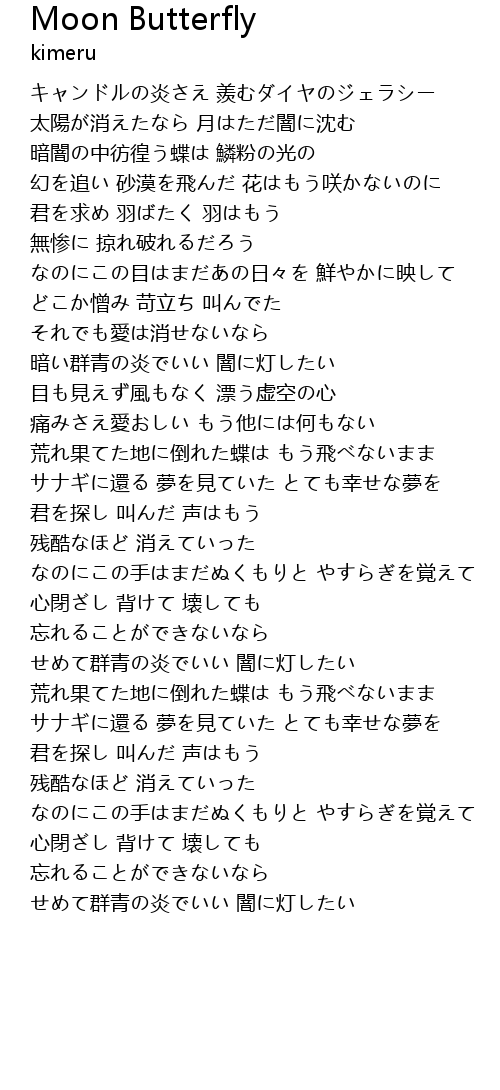 | 暗闇の中彷徨う蝶は 鱗粉の光の | |