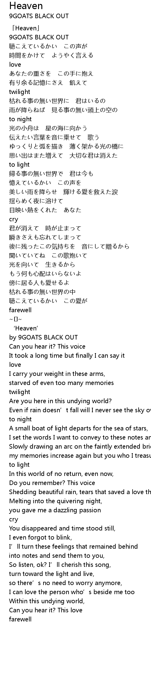| Even if rain doesn' t fall will I never see the sky overhead? | |