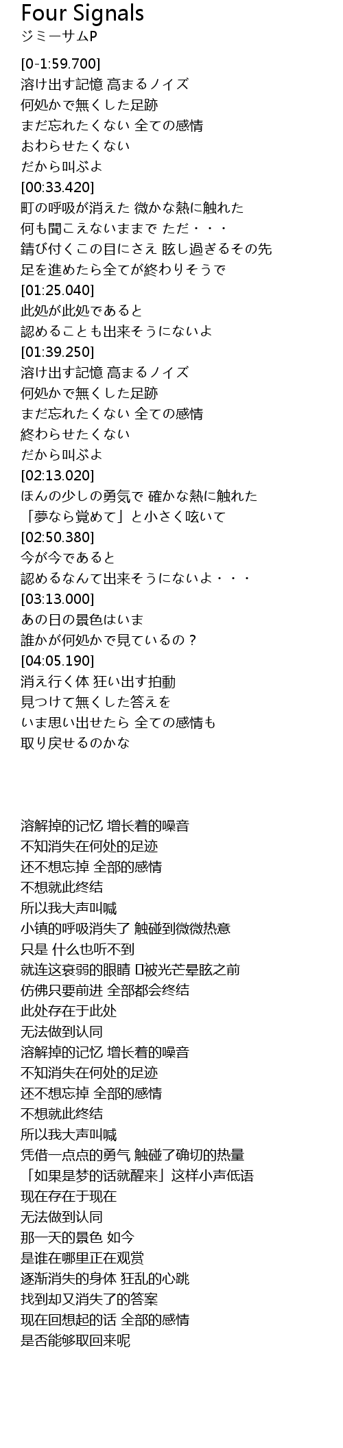 | [04:05.770] | 消え行く体 狂い出す拍動 |
